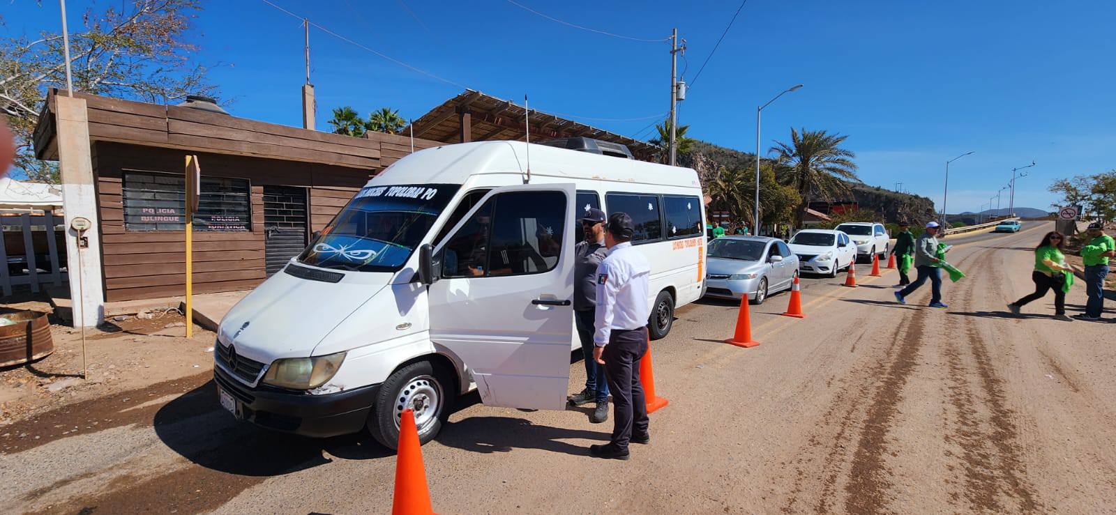 Inspectores de la delegación local de Vialidad y Transportes llevan a cabo supervisión del transporte público en los diferentes puntos de la ciudad y la playa Las Glorias para verificar que las unidades circulen de la mejor manera y brindar seguridad a los usuarios en esta Semana Santa.