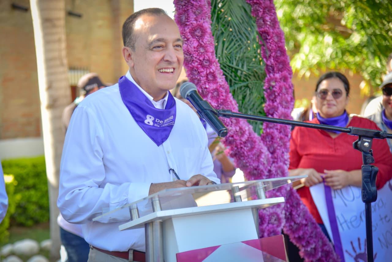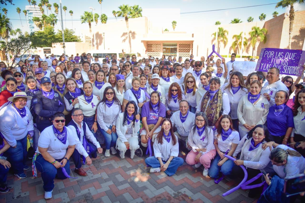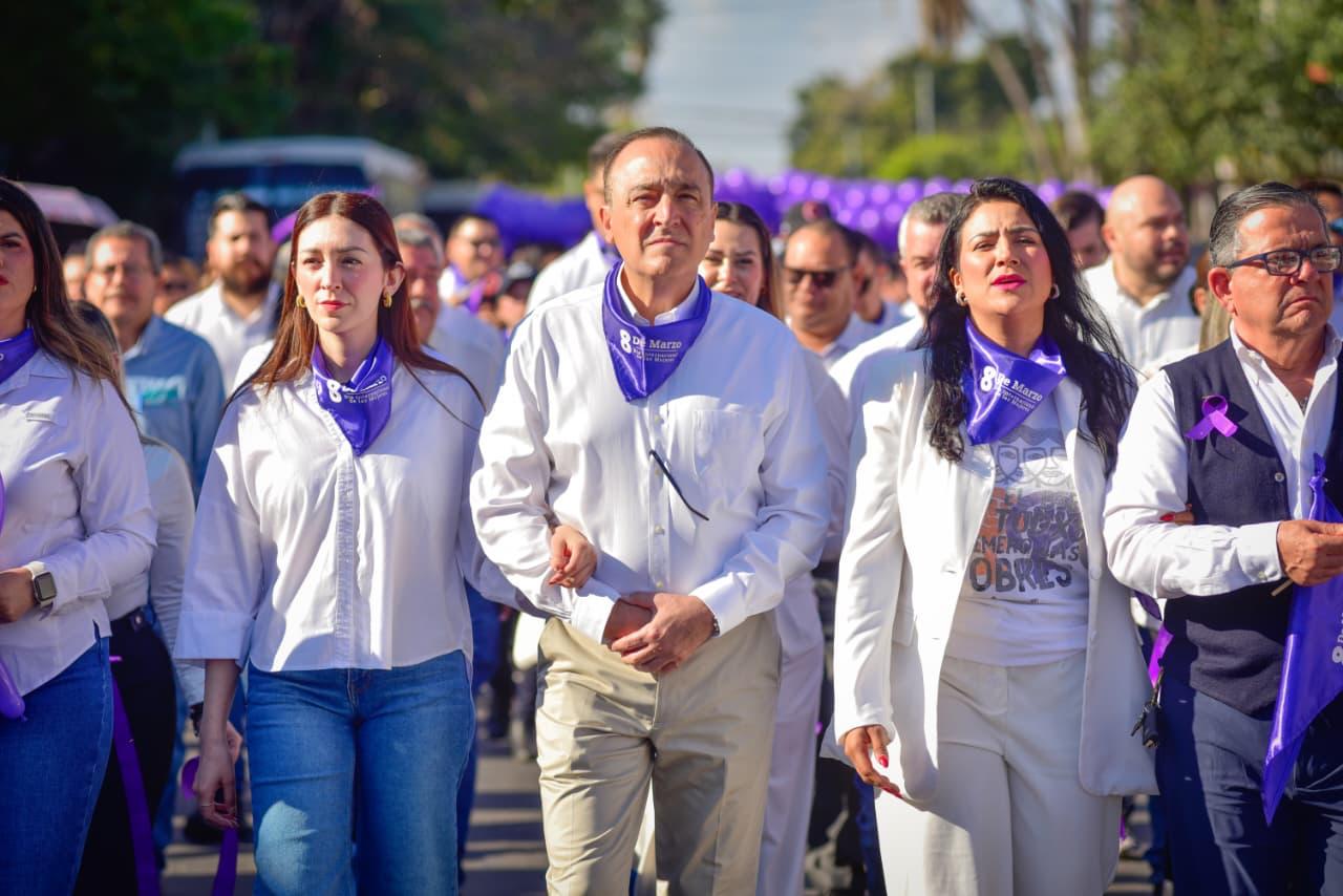 Los Mochis, Ahome, Sinaloa. A 06 de Marzo de 2026.- En el marco de la conmemoración del Día Internacional de las Mujeres, el Ayuntamiento de Ahome realizó la marcha “Derechos, Justicia y Acción por y para todas las mujeres y niñas”, encabezada por el Presidente Municipal, Antonio Menéndez de Llano Bermúdez, acompañado de su hija Marissa Menéndez de Llano Chávez, Presidenta del Sistema DIF Ahome, así como de funcionarias, trabajadoras del Ayuntamiento y diversas mujeres de la sociedad civil que se sumaron a esta movilización.