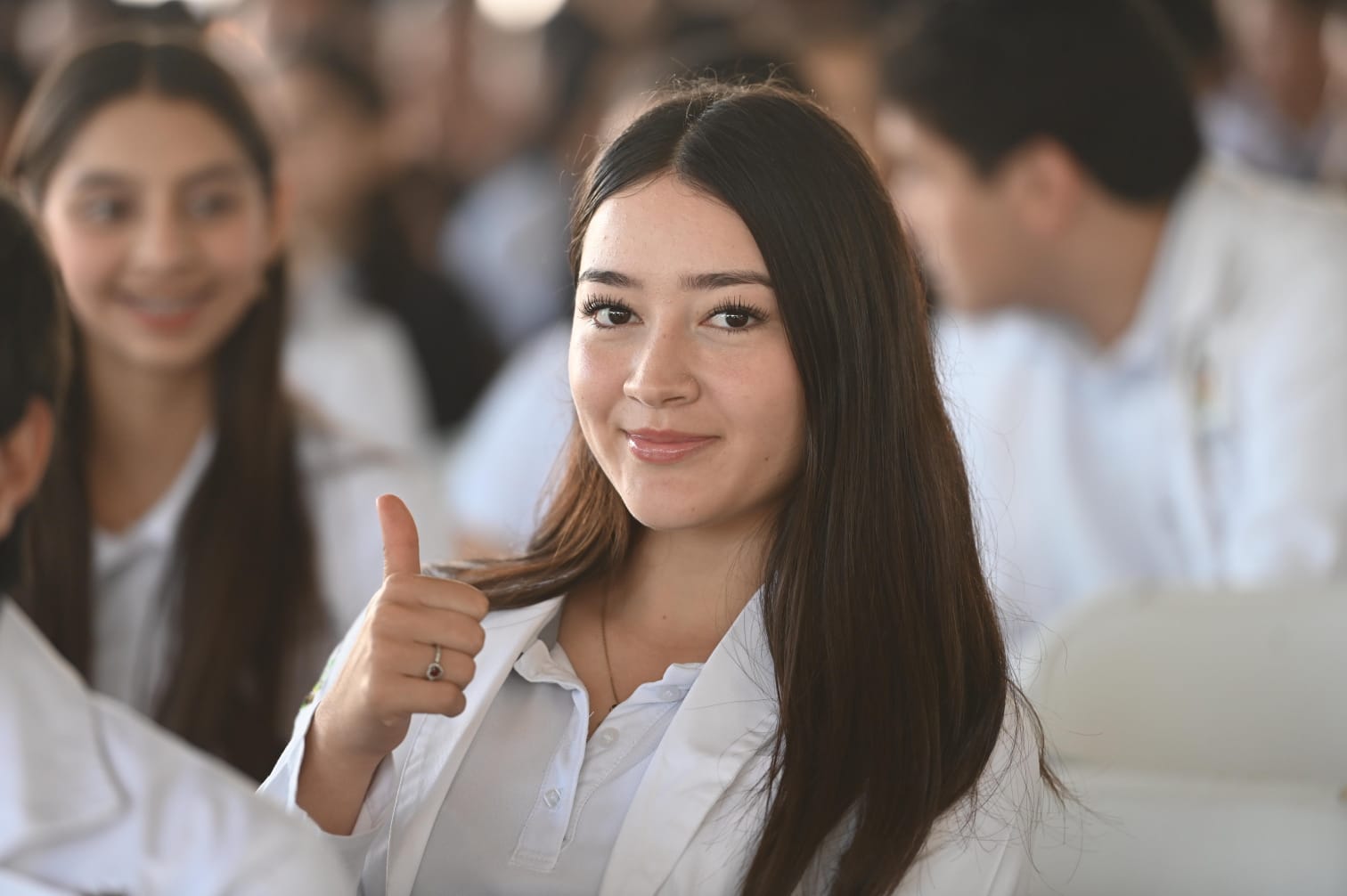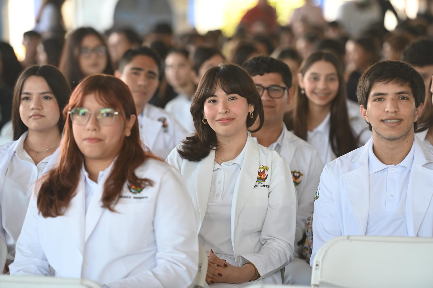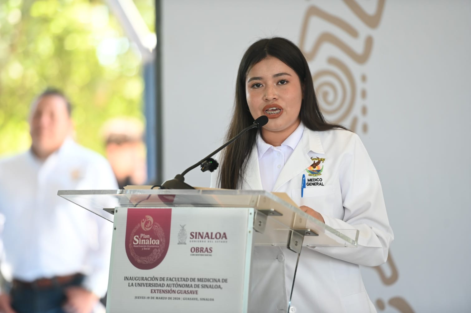 A nombre de los estudiantes de Medicina, la alumna Rosario Guadalupe Gámez Navarro agradeció al Gobernador por apostar por la educación y por escuchar siempre a la comunidad universitaria, demostrando con acciones que invertir en enseñanza es invertir en el futuro de Sinaloa.