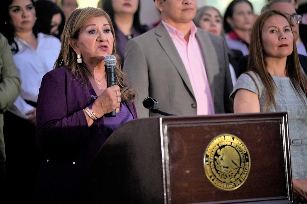 Señaló que la iluminación del Congreso del Estado simboliza el reconocimiento a millones de mujeres que han trabajado por la conquista de derechos fundamentales como la participación política, la igualdad y una vida libre de violencia.
