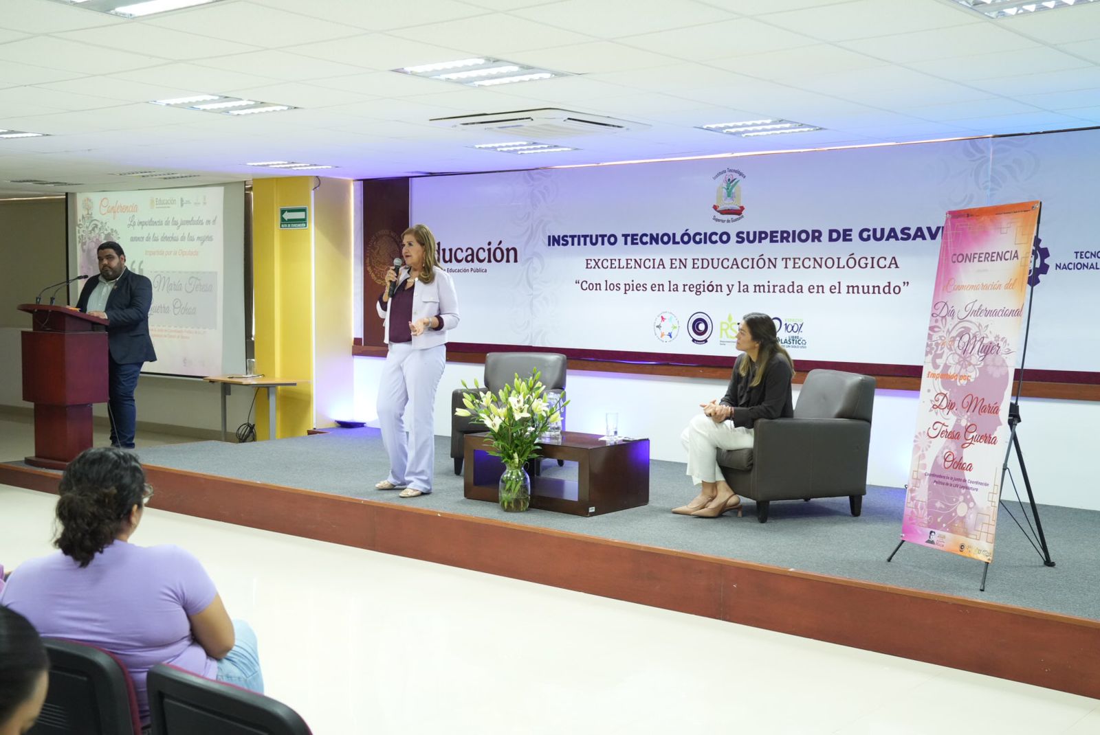 En el marco de la conmemoración del Día Internacional de las Mujeres, la diputada Tere Guerra Ochoa, presidenta de la Junta de Coordinación Política del Congreso del Estado, impartió la conferencia “La importancia de las juventudes en el avance de los derechos de las mujeres” en el Instituto Tecnológico Superior de Guasave.