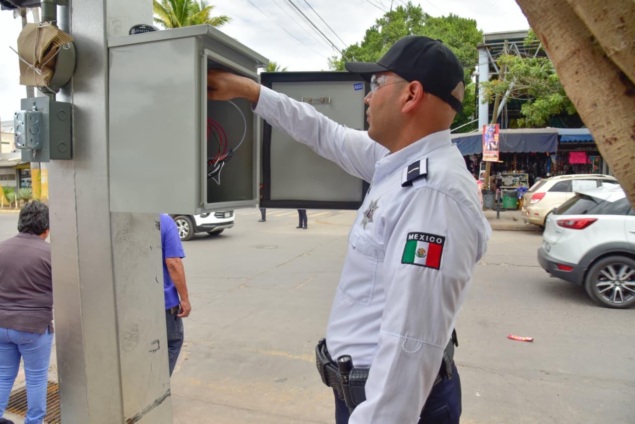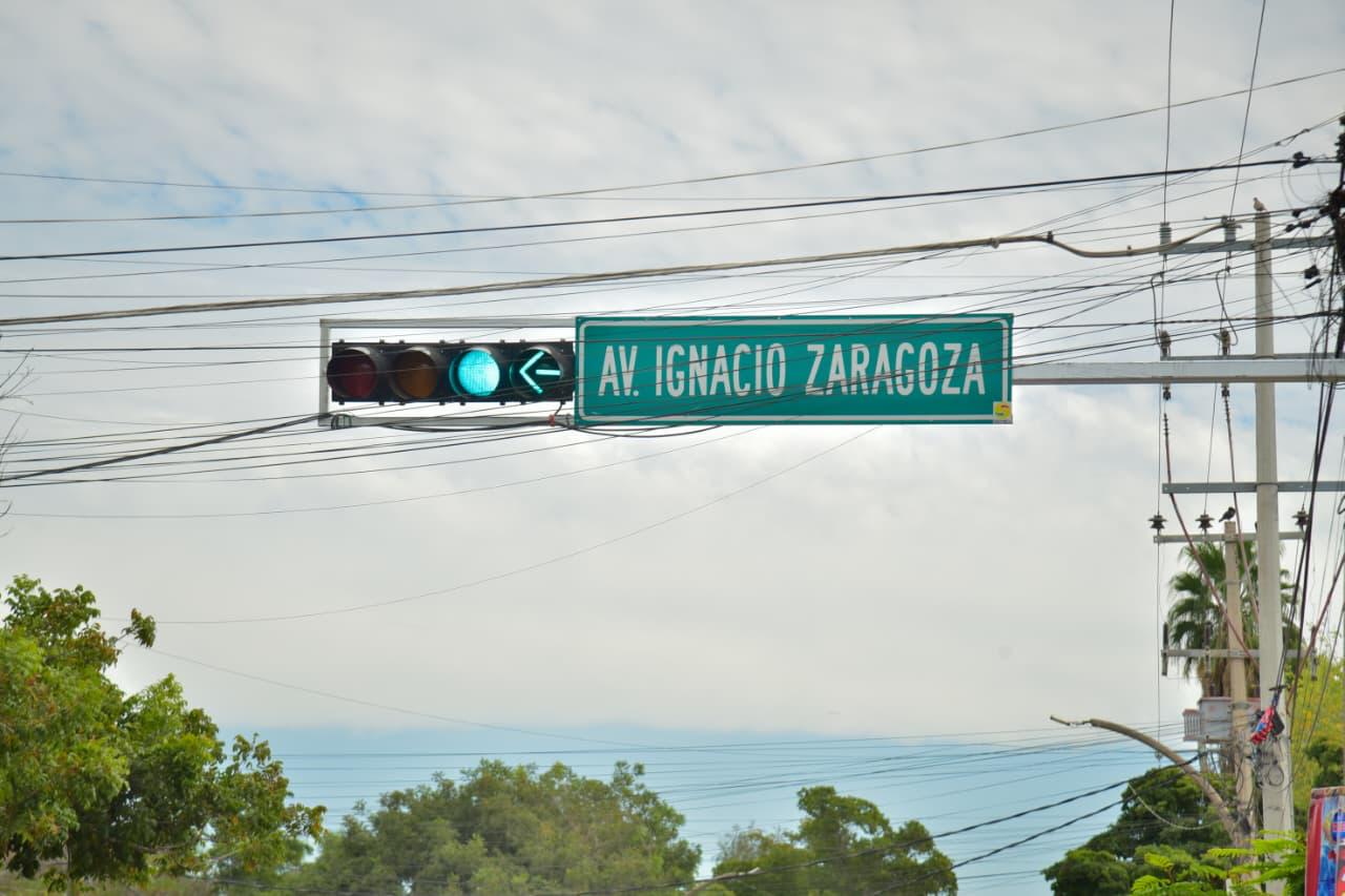 Los Mochis, Ahome, Sinaloa. A 13 de Febrero de 2026.- Con el respaldo del Presidente Municipal Antonio Menéndez de Llano Bermúdez, el Gobierno de Ahome puso en funcionamiento el semáforo del cruce de la avenida Ignacio Zaragoza y Cuauhtémoc, ubicado en el sector Zona 030, con el objetivo de fortalecer la seguridad vial y ordenar el tránsito en un área de alta concentración peatonal y vehicular.