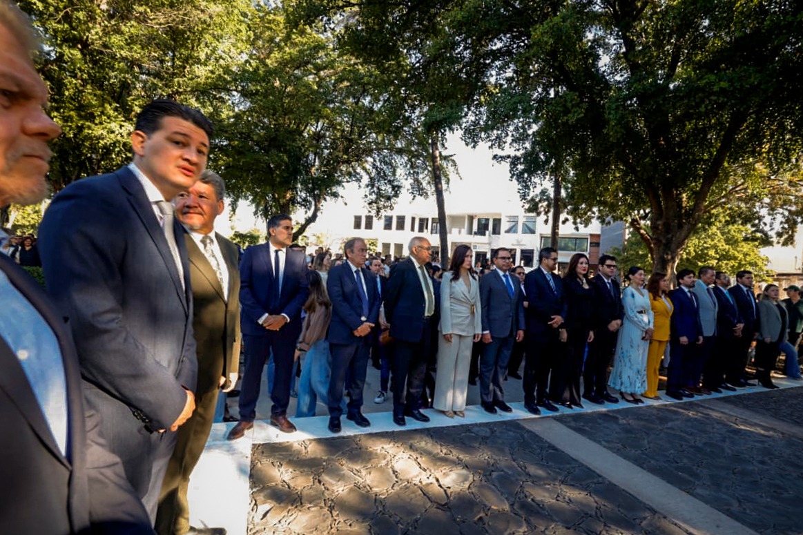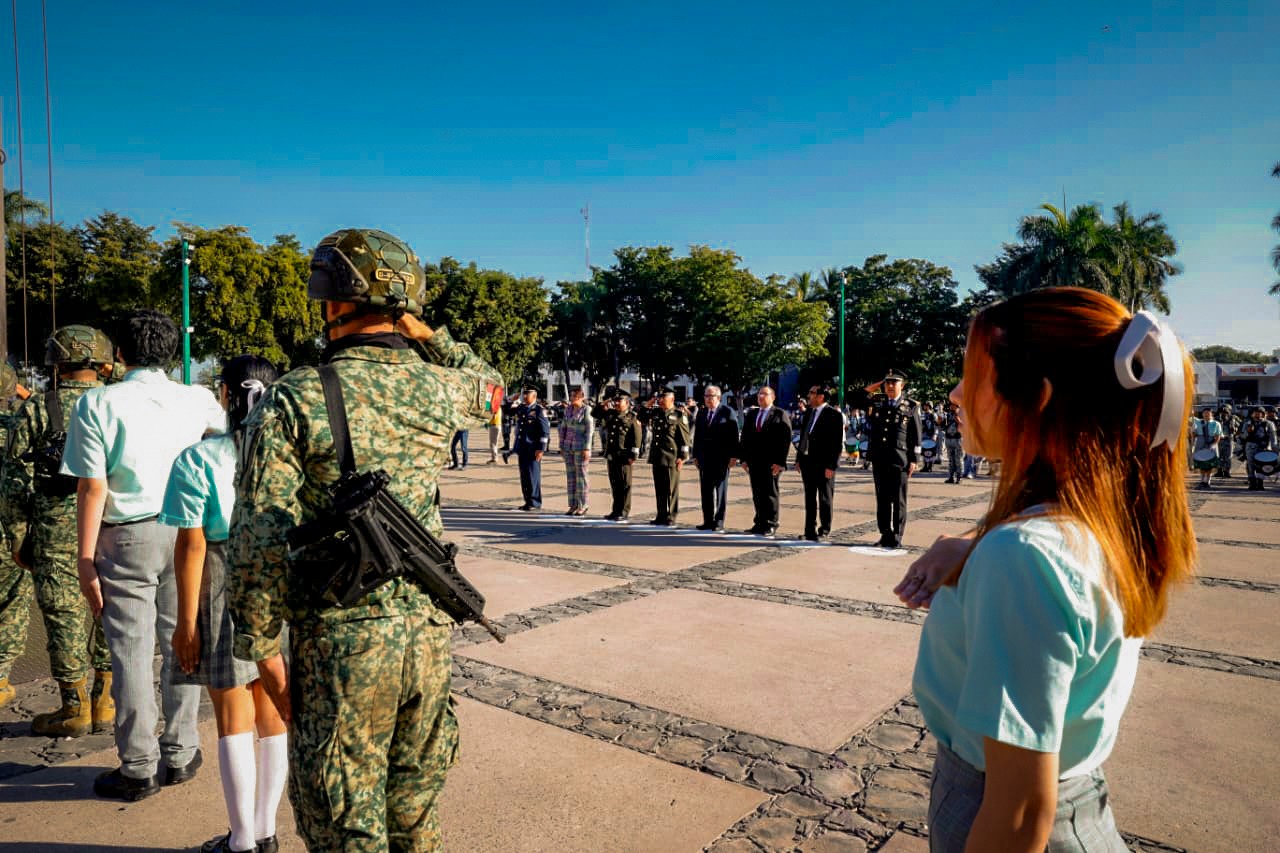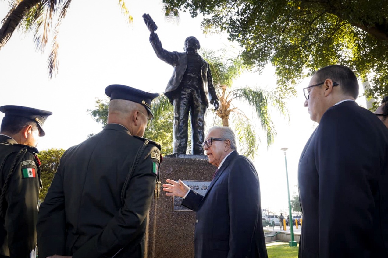 Posteriormente, se montó una guardia de Honor en el monumento erigido en su nombre en los jardines de la Plaza Cívica de Palacio de Gobierno, encabezada por el mandatario estatal y autoridades civiles y militares, para rendir tributo al legado de Benito Juárez.