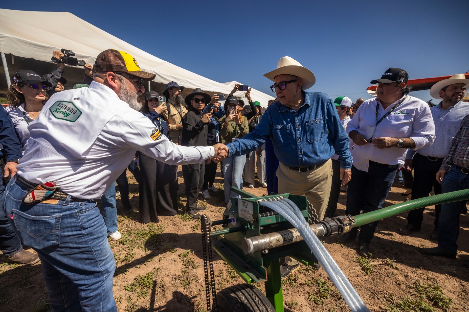 Por otra parte, aprovechó la presencia del subsecretario de Agricultura, Leonel Cota Montaño, para recordar el compromiso de pago que se tiene con los productores de trigo, y precisó que el Gobierno del Estado, con recursos propios, les otorgó un apoyo extraordinario de 400 pesos por tonelada ahora en diciembre, para atenuar este lapso de espera en lo que salen los apoyos federales.