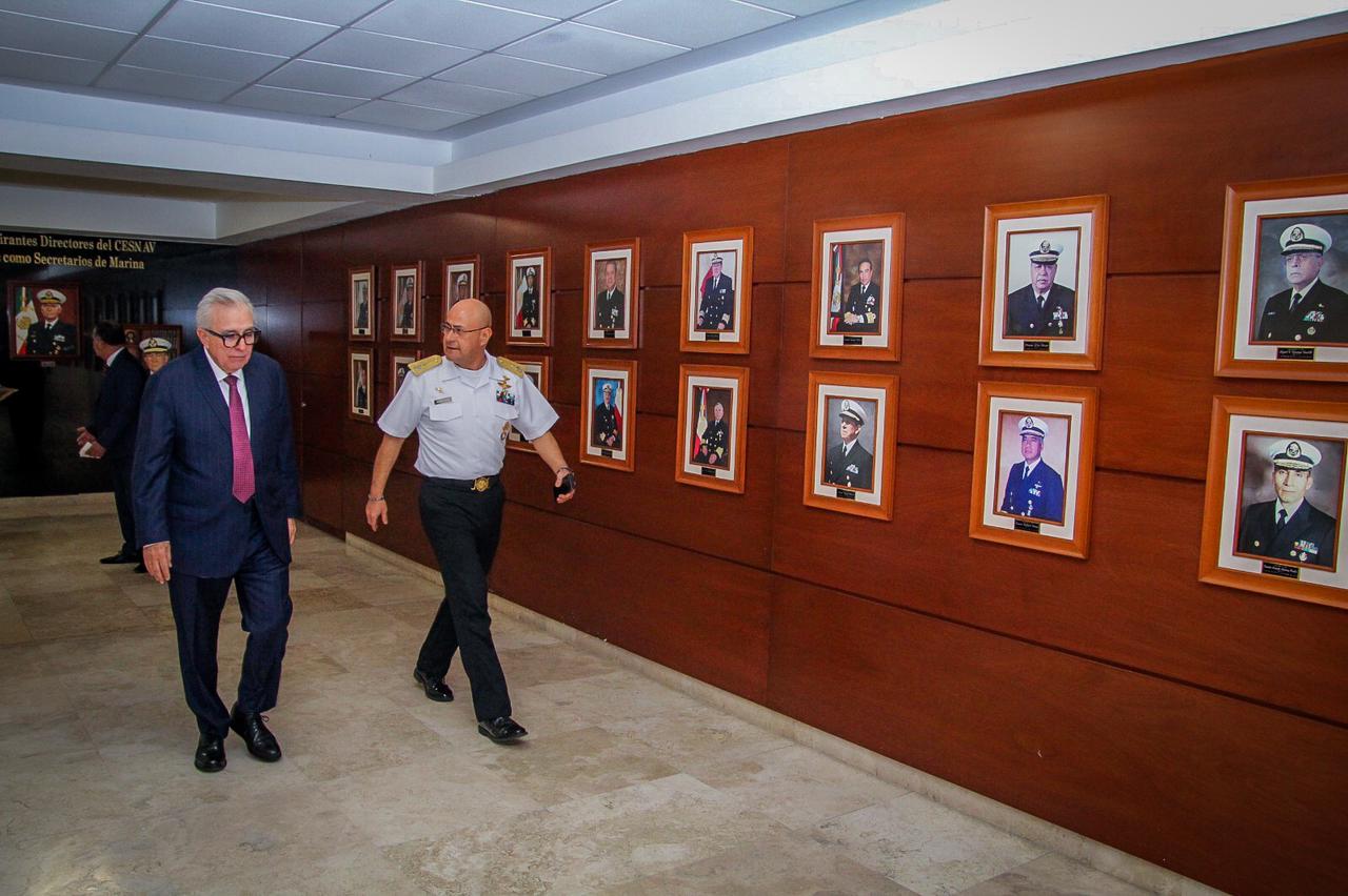 El mandatario estatal fue invitado por la Dirección de la Escuela de Guerra Naval, perteneciente a la Universidad Naval que alberga este Centro de Estudios, para exponer su ponencia ante 35 cursantes de la LIX promoción de la Maestría en Seguridad Nacional, que cursan capitanes de la Secretaría de Marina, coroneles de la SEDENA, personal del Centro Nacional de Inteligencia (CNI), de la Agencia Nacional de Aduanas de México (ANAM), y además con presencia internacional, con un capitán naval de Guatemala, y un teniente coronel de China.