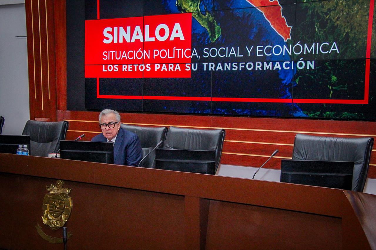 Ciudad de México, a 9 de marzo de 2026.- El gobernador Rubén Rocha Moya impartió una conferencia magistral titulada “Sinaloa, situación política, social y económica; Los retos para su transformación”, ante los cursantes de la Maestría en Seguridad Nacional del Centro de Estudios Superiores Navales, de la Secretaría de Marina, en la Ciudad de México.