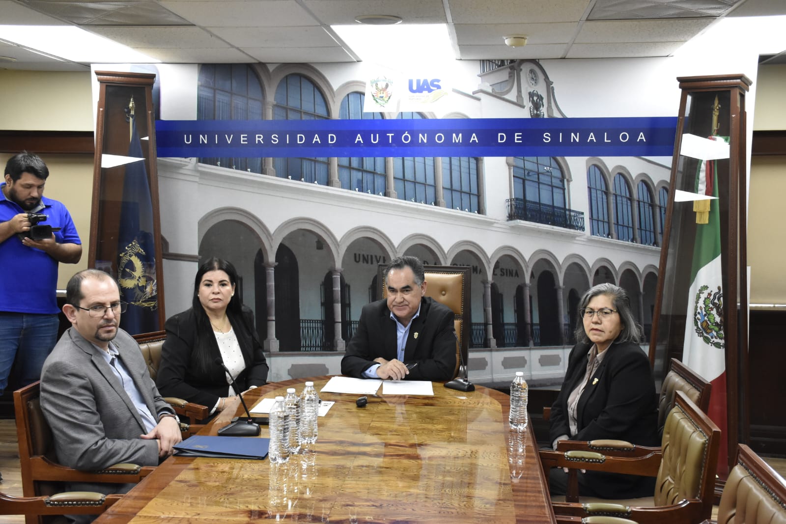 Ante la directora de la Unidad de Bienestar Universitario, doctora Sofía Angulo de Madueña y la responsable de la Cultura de Paz en la UAS, doctora Alma Luz Bernal, el dirigente universitario indicó que la renovación de este Convenio refrenda una relación de colaboración que desde hace años ha permitido impulsar procesos formativos orientados a la cultura de la paz, la justicia transicional y la reconstrucción del tejido social, particularmente en la ciudad de Culiacán.