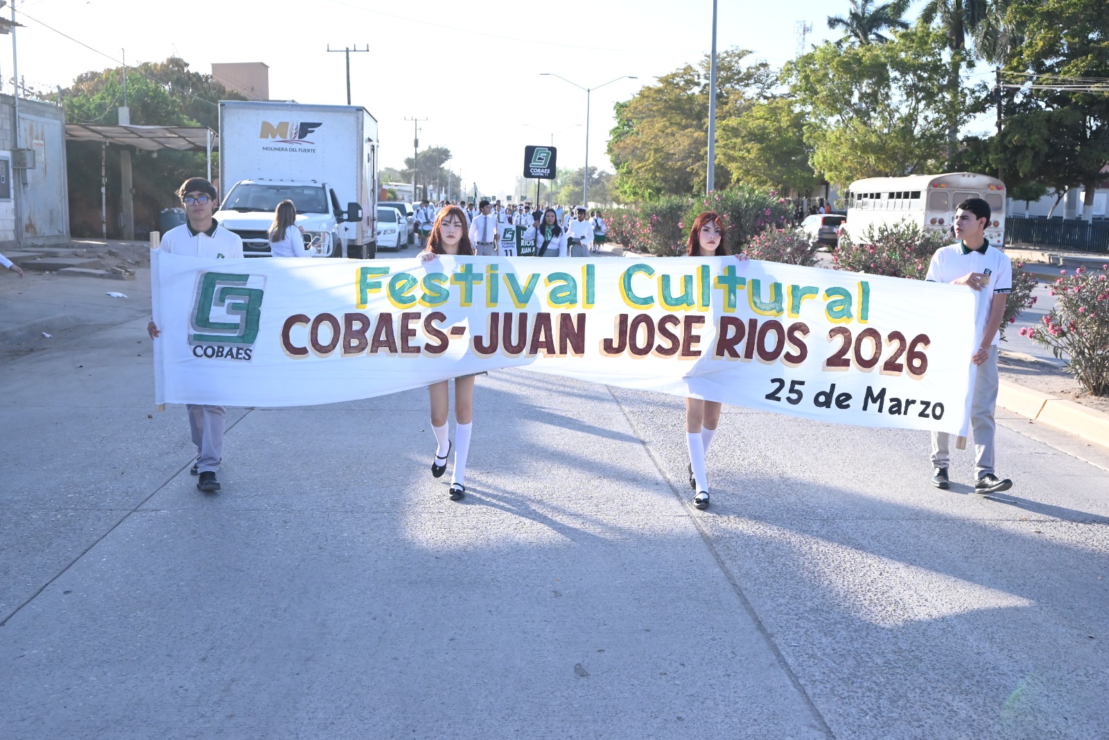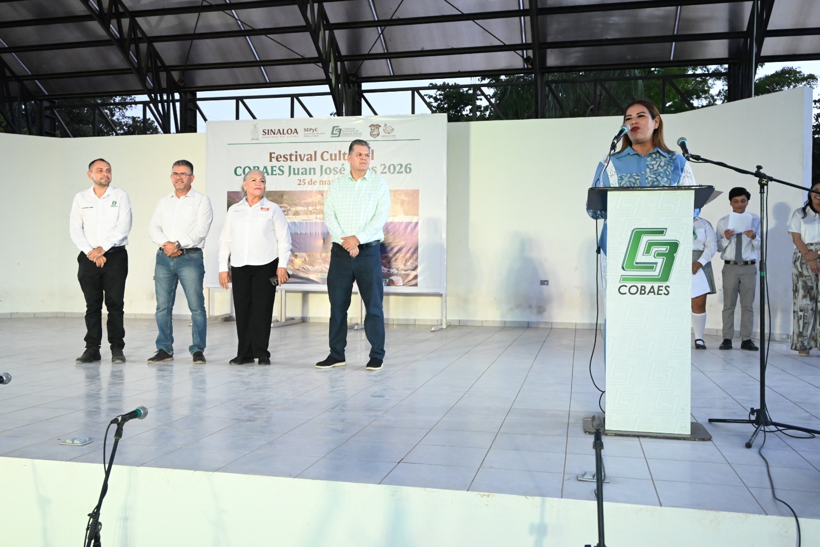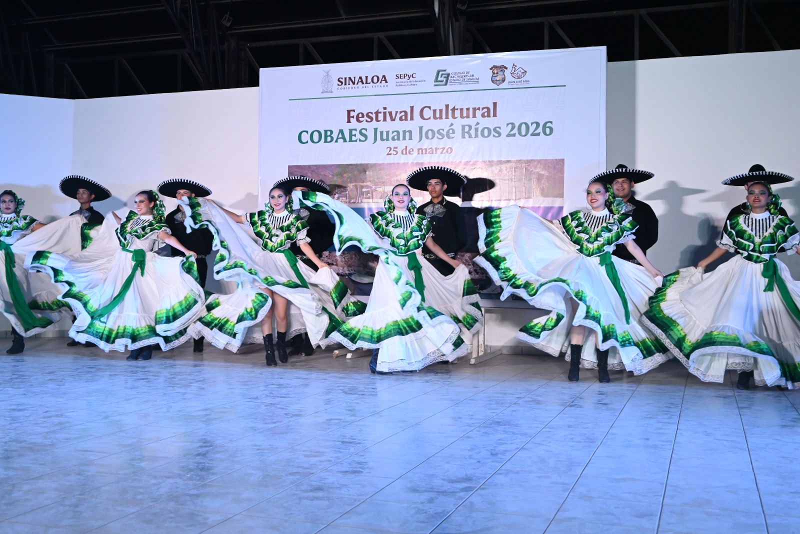 Juan José Ríos, Sinaloa a 25 de marzo de 2026.- En Juan José Ríos se vivió el Primer Festival Cultural COBAES 2026, encabezado por la alcaldesa Evangelina Llanes Carreón a través de las Direcciones de Educación, Juventud y Cultura, Gloria Elena Martínez Estrada, Juan de Dios Cota Aopodaca y Veronica Escalante Grijalva en colaboración con COBAES, en representación del Director General, Dr. Santiago Inzunza Cázares, acompañó el Lic. Edson Emilio Ibarra, Director de Extensión de la cultura de COBAES, ofreciendo un lugar lleno de tradición y cultura que enorgullece, representa y engrandece al municipio.